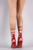 This lovely heel features an open toe silhouette, strappy rope design with self-tie lace-up closure, and wrapped stiletto heel. Finished with lightly padded insole for comfort.