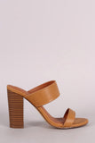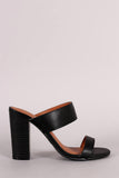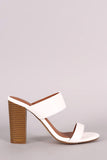 This simple heel features two bands across vamps, open toe silhouette, and chunky heel. Finished with a lightly cushioned insole for comfort and slip-on for easy on/off.