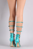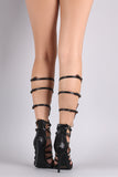These versatile heel feature a wing cutout design with detachable shaft, adjustable buckle straps, wrapped stiletto heel, and back zipper closure. Finished with a lightly padded insole for comfort.