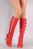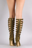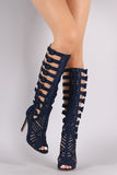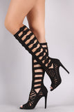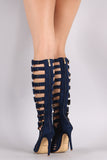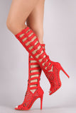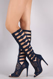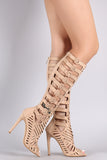 This stylish heel features a strappy construction with side buckles embellishment, geometric cutout design vamp, peep toe silhouette, and stiletto heel. Finished with lightly padded insole and rear zipper closure for easy on/off.
