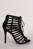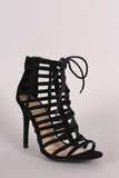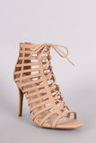 • Anne Michelle Nubuck Caged Lace Up Stiletto Heel