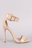 This alluring heel features an open toe silhouette, one band across vamp, and wrapped stiletto heel. Finished with a lightly cushioned insole and adjustable wide ankle strap with buckle fastening.