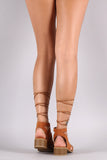 This casual heel features an open toe silhouette, corset lace-up vamp, side cutouts detail, and blocky stacked heel. Finished with a lightly cushioned insole.