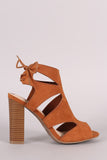 These stylish peep toe feature a keyhole cutout design, back lace-up closure, and chunky stacked heel. Finished with a lightly padded insole for comfort.