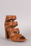 This cutesy heel features a vegan leather upper, 4-strap vamp with cutout details, peep toe silhouette, and faux wooden chunky heel. Finished with a rear zip-up closure and lightly cushioned insole for comfort.