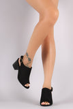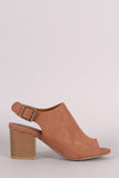 This stylish heel features a soft vegan suede upper with center seam detail, peep toe silhouette, and chunky stacked heel. Finished with a lightly padded insole and adjustable slingback strap with buckle fastening.
