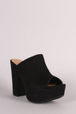 This heel features a soft vegan suede upper with a partial elastic goring at inner side for a flexible fit, peep toe silhouette, and chunky platform heel. Finished with a lightly padded insole and easy slide style.