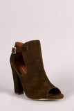These chic booties feature a peep toe silhouette, side cutouts construction with a buckle closure, and wrapped chunky heel. Finished with a lightly padded insole for comfort.