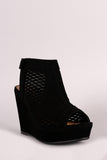 This chic wedge features a nubuck upper, peep toe silhouette, perforated caged construction, and wrapped platform wedge heel. Finished with a loob back adhesive closure strap and lightly cushioned insole.