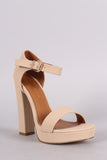 This lovely platform heel features an open toe silhouette, chunky wrapped heel, and ankle strap with adjustable side buckle closure. Finished with a lightly padded insole.
