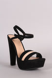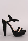 This stylish open toe heel features a wide strap across vamp with stripe accent, tribute platform, and wrapped thick heel. Finished with a lightly padded insole and adjustable ankle strap with buckle closure.