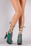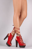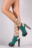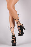 This peep toe mule lace up front, studded detailing, stacked platform, and thick heel. Finished with lightly padded insole for comfort.