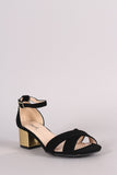• Qupid Crisscross Ankle Strap Blocked Heeled Sandal