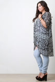 This lightweight plus size cardigan features a semi-sheer chiffon with paisley prints, short dolman sleeves, draped open front design, and asymmetrical hemline. Accessories sold separately. 100% Polyester.