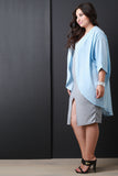 This plus size cardigan features a chiffon fabrication, dolman sleeves with folded end, draped open front, and high-low hemline. Accessories sold separately. Made in U.S.A. 100% Polyester.