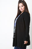 This plus size cardigan has an open front lapel design with full long sleeves. Soft knit. Ribbed trim hemline. Accessories sold separately. 50% Viscose, 50% Nylon.