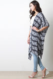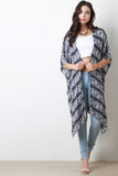 This boho inspired kimono features a square cute design, open front, short sleeves and side slits, with a woven fabrication and paisley print stripe print. Accessories sold separately. Made in U.S.A. 100% Rayon