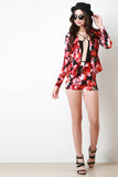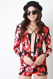 This casual blazer features a textured knit fabric, floral print throughout, open front design, and longsleeves fit. Accessories sold separately. Made in U.S.A. 96% Polyester, 4% Spandex.