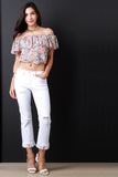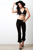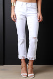 These simply chic jeans feature front razorcut slit details, fringed hemline, classic 5-pocket construction, belt loops, and bootcut length. Finished with a single button closure with zipper fly. Accessories sold separately. 98% Cotton, 2% Spandex.