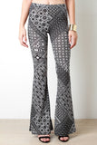 These chic pants feature a jersey knit fabric, geo bohemian print design, high waisted fit, and bell bottom construction. Accessories sold separately. Made in U.S.A. 96% Polyester, 4% Spandex.