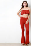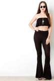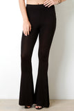 These casual pants feature a jersey knit fabrication, high waisted fit, and finished with a bell bottom fit. Accessories sold separately. Made in U.S.A. 95% Rayon. 5% Spandex.