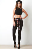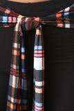 These high waisted leggings features an elasticized band, stretchy fit, and a plaid shirt tied design at waist. Accessories sold separately. Made in U.S.A. 95% Cotton, 5% Spandex.