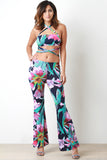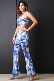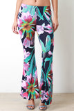 These pants features a flare cut fit, elasticized waist, and floral pattern print. Made in U.S.A. 95% Polyester, 5% Spandex.