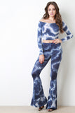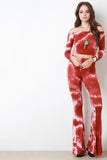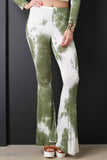 These pants feature a jersey knit fabric, cloudy tie dye print, high waisted fit, flare cut, and elasticized waist band. Accessories sold separately. Made in U.S.A. 95% Rayon, 5% Spandex.