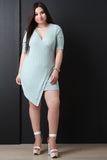 This beautiful dress features a wrap style with overlapping front that creates a flattering look. Includes a surplice neckline and elbow sleeves design. Finished with asymmetrical hemline. Accessories sold separately. Made in U.S.A. 96% Rayon, 4% Spandex.