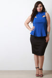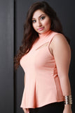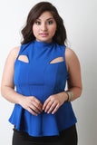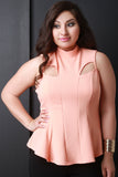 This top features textured knit, mock neck, cut out design, vertical seams for structured look, and back keyhole cutout with double button closure at nape. Accessories sold separately. Made in U.S.A. 95% Polyester, 5% Spandex.