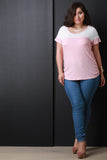 This top features a textured knit fabrication, scoop neckline, shortsleeve fit, and gold buttons accent on shoulders. Finished with a cinched side detail. Accessories sold separately. Made in U.S.A. 97% Rayon, 3% Spandex.