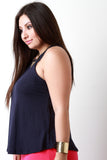This plus size top features a ribbed knit fabrication, round neckline, and sleeveless construction with crochet trim detail. Accessories sold separately. Made in U.S.A. Self: 95% Rayon, 5% Spandex. Lining: 100% Polyester.