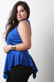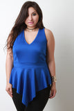 This plus size top features a soft stretchy knit fabrication, v-neckline, sleeveless construction, and peplum design with angle hem. Accessories sold separately. Made in U.S.A. 95% Polyester, 5% Spandex.