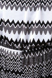 This plus size jumpsuit features a lightweight knit fabrication, multiple zigzag patterns print, back bow construction, and off the shoulder neckline. Finished with a cinched elasticized waist. Accessories sold separately. Made in U.S.A. Self: 95% Polyester, 5% Spandex. Lining: 100% Polyester.