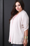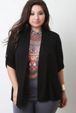 This plus size cardigan features a thermal knit fabrication, open front design, and half sleeves with a gold tone button detail. Accessories sold separately. 88% Rayon, 12% Polyester.