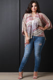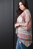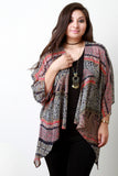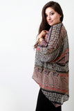 This plus size cardigan features a boho paisley-printed chiffon fabrication, open-front design, dolman sleeves, and asymmetrical hemline. Accessories sold separately. Made in U.S.A. 100% Polyester.