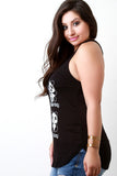 This cutesy plus size top features a jersey knit fabric, weekend panda graphic print, scoop neckline, and sleeveless construction. Finished with a rounded hemline and elasticized racerback. Accessories sold separately. Made in U.S.A. 97% Rayon, 3% Spandex.