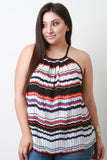 This top is trapeze silhouette; sleeveless design with a round neckline and back button and loop keyhole. Flare cut. Semi-sheer, unlined. Rectangular striped print throughout. Accessories sold separately. 100% Polyester.