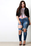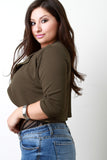 This chic plus size cardigan features a stretchy textured knit fabrication, zipper trimming design, elbow sleeves with ruched detail, and cropped hemline. Accessories sold separately. Made in U.S.A. 96% Polyester, 4% Spandex.