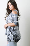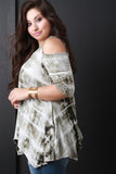 This plus size top is flare cut and stretchy soft knit fabrication, featuring a tie dye print throughout. Designed with a round neckline and quarter sleeves. Mixed tie dye print throughout. Finished with a sharkbite hemline. Accessories sold separately. 97% Rayon. 3% Spandex.