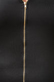 This fashion-forward plus size dress features a three-way zipper trim construction, elbow sleeves, round neckline, and midi-length hemline. Accessories sold separately. 95% Polyester, 5% Spandex.