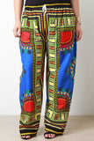 These plus size pants feature colorful African print, elasticized waist, self-tie drawstring, and wide pant legs. Accessories sold separately. 100% Cotton.