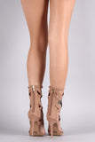 This lovely heel features an open toe, circle cut out caged silhouette, single sole, and wrapped stiletto heel. Finished with lightly padded insole and rear zipper closure for easy on/off.