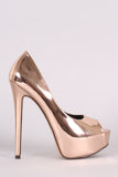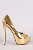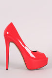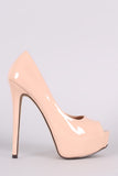 This versatile pump features a high-shine patent upper, peep toe silhouette, partially hidden platform, and wrapped stiletto heel. Finished with a lightly padded insole and easy slide style.