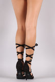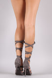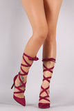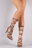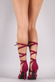 These simply chic pumps feature a pointy toe silhouette, strappy leg wrap construction, and wrapped stiletto heel. Finished with a lightly cushioned insole.