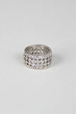 Brushed metal ring featuring a cutout band with allover rhinestones silhouette design on a non-adjustable band.