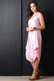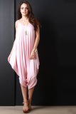 This oversize jersey jumpsuit features a plunging round neckline at the front and back, thin shoulder straps, and voluminous draping asymmetrical bottom. Accessories sold separately. Made in U.S.A. 94% Rayon, 6% Spandex.
