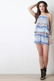This romper features tribal elephant print, halter neckline, and finished with partial lining. Accessories sold separately. Made in USA. 100% Polyester.