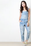 These overalls feature faded denim, distressed accents, single front pouch, four pockets, belt loops, and adjustable straps. Accessories sold separately. 100% Cotton.