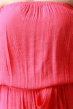 This chic plus size jumpsuit features a strapless elastic neckline, lightweight gauzy fabrication, elastic waist, wide cut leg, half lining, and a removable self tie belt. Accessories sold separately. 100% Polyester.